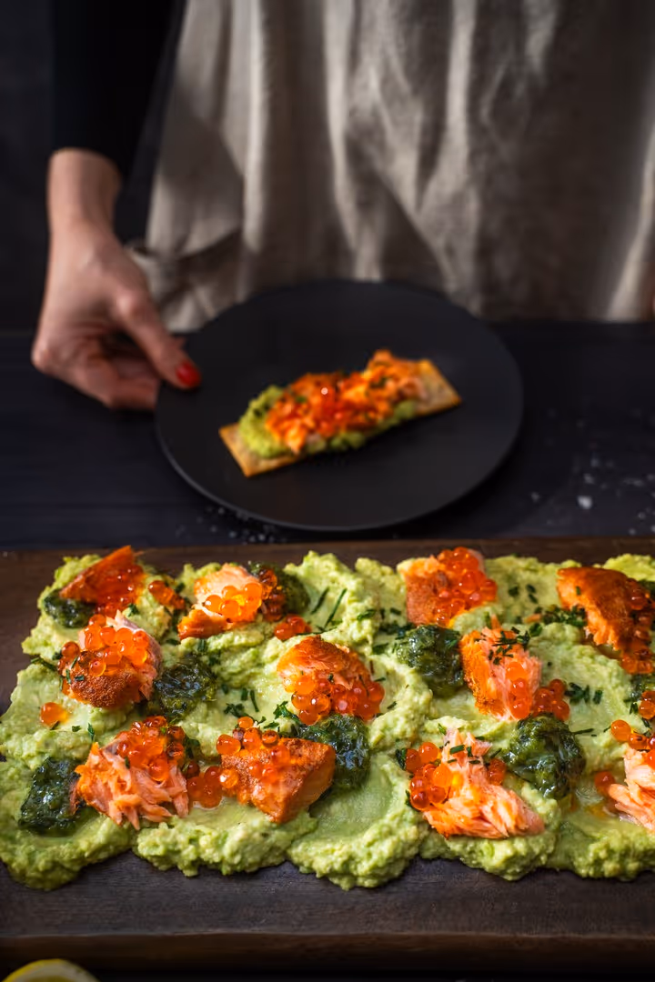These appetiser boards have taken social media by a storm and we see why! We used a classic combo of salmon and avocado and brightened it up with pops of flavour.