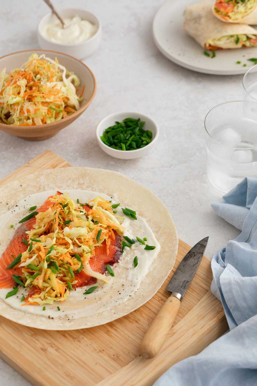Wraps with Blackcurrant Cold Smoked Salmon & Apple Slaw